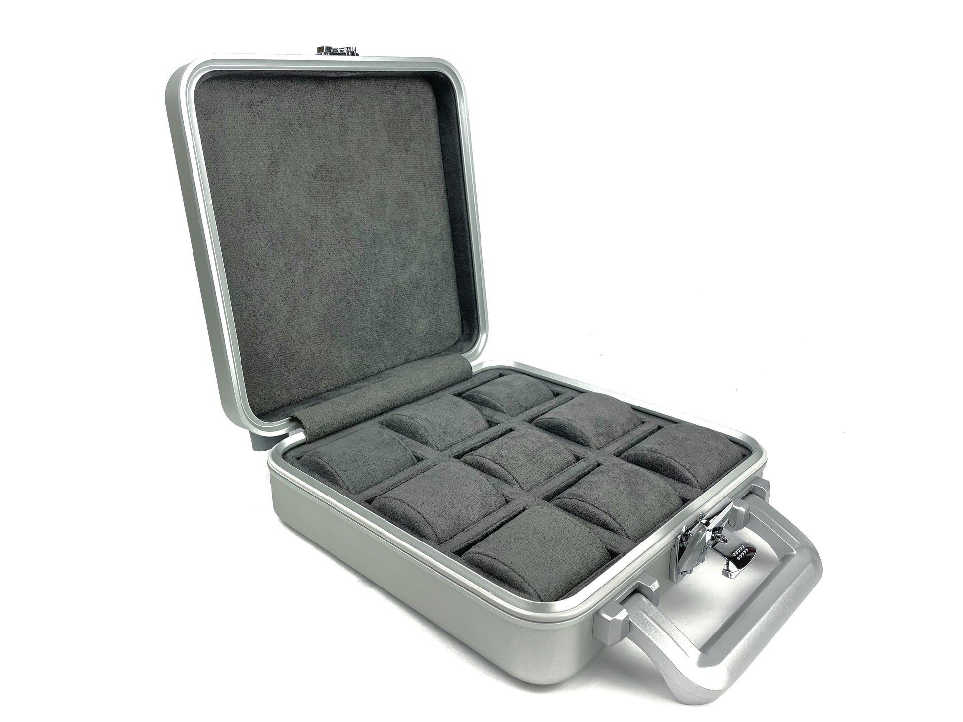 LIMITED! Your ultimate watch travel companion that’s both light, solid and cool (literally!). This Watch case is made of aluminium with 9 Watch slots adorned in grey velvet. Comes with a special lock to keep your watches secured while travelling in style. This Bond-style case is extremely limited for this holiday season only!